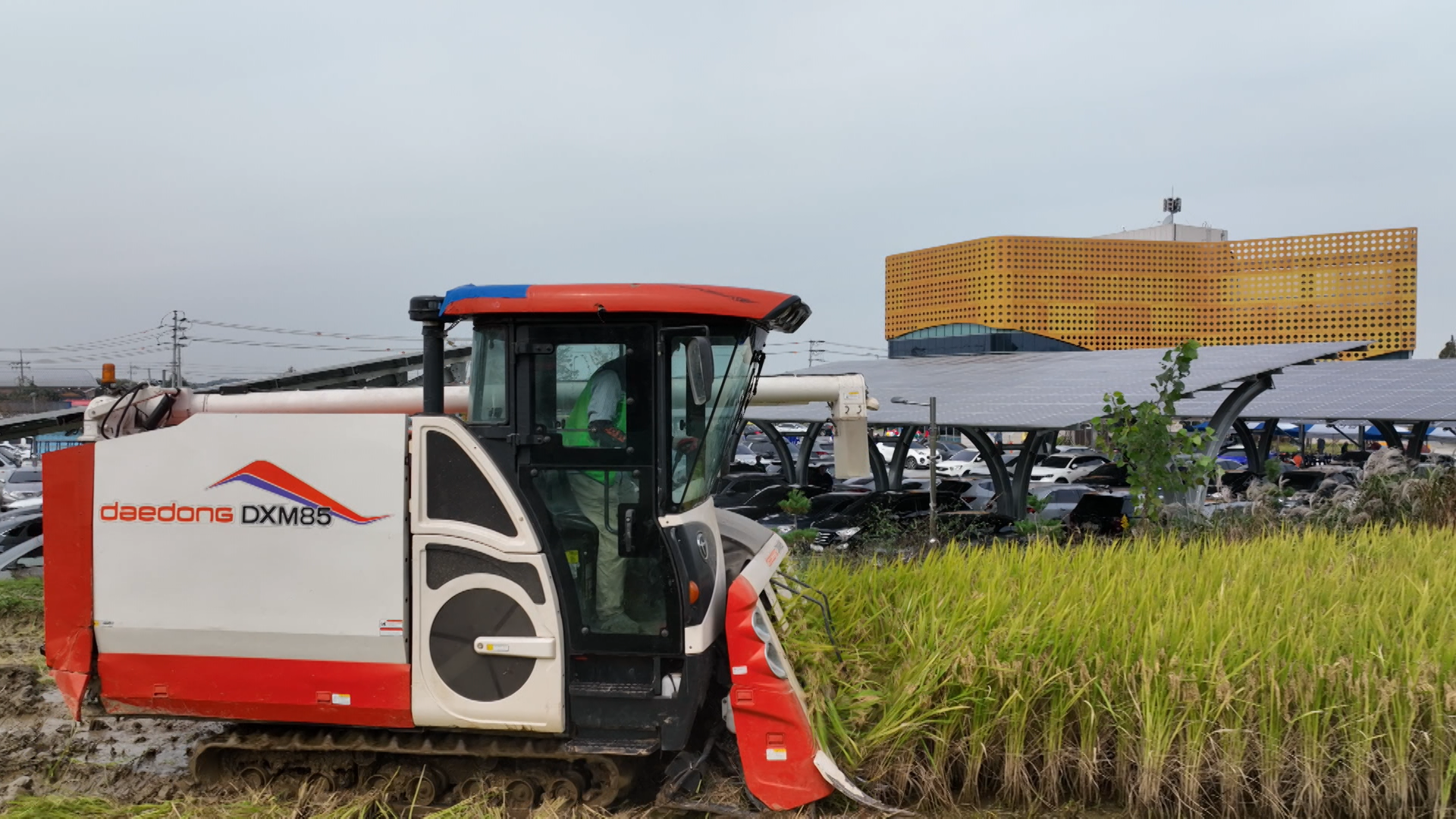 완주군 용진읍이 10년째 '사랑의 쌀 벼 베기 행사'를 이어가고 있습니다.
