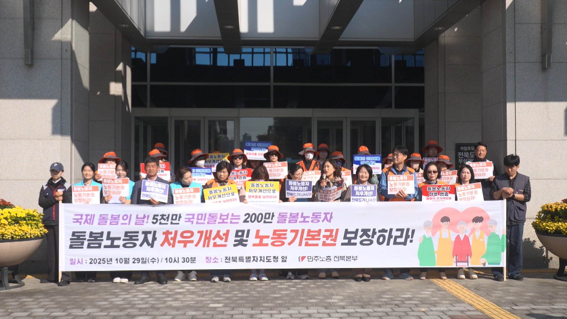 민주노총 전북본부는 오늘(29일) 전북도청 앞에서 기자회견을 열고, 전국적으로 요양 시설 대부분이 민간 위탁에 의존하고, 국공립 어린이집도 전체 20%대에 불과하다며 정부와 지자체 차원의 통합 돌봄 체제를 만들라고 요구했습니다.