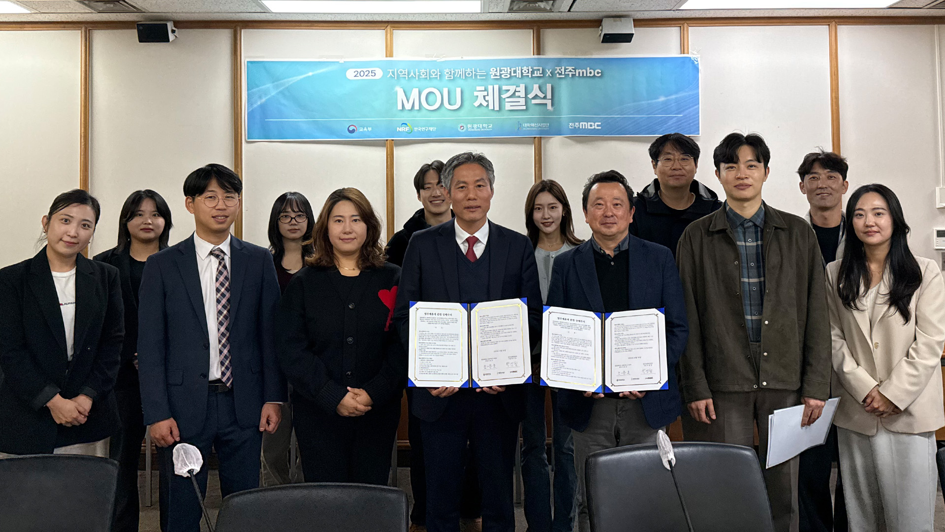 원광대학교 대학혁신사업단과 전주MBC가 업무협약을 체결하고, 콘텐츠 개발과 학생 교육, 문화협력을 위해 공동 노력하기로 했습니다.