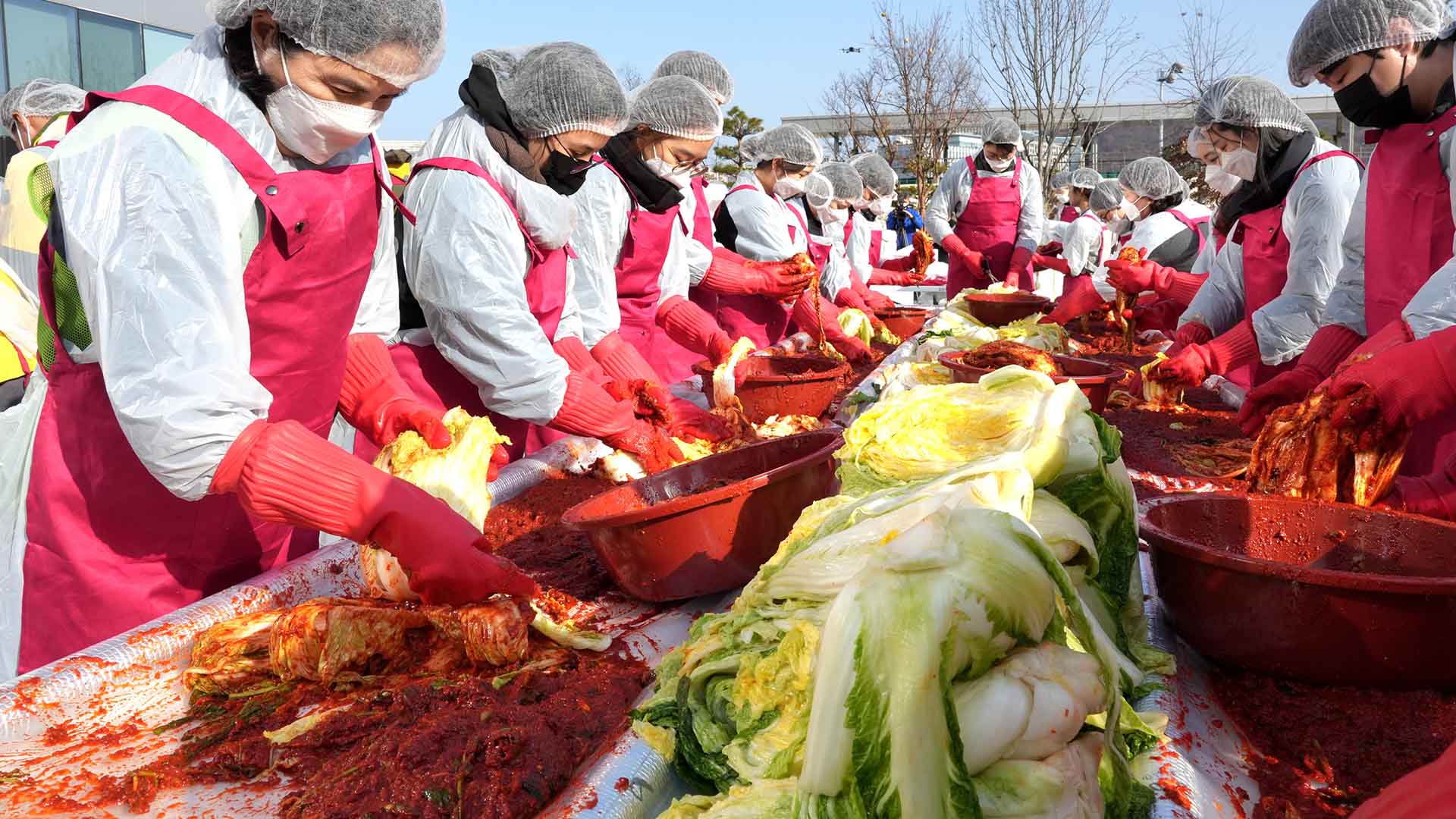 국민연금공단과 국토정보공사, 전기안전공사는 오늘(2일) 국토정보공사 잔디광장 앞 공터에서 3개 기관 임직원과 지역복지관 담당자 등 100여 명이 참여한 가운데 김치 3,500kg을 담가 지역의 취약계층 650세대에 전달했습니다.