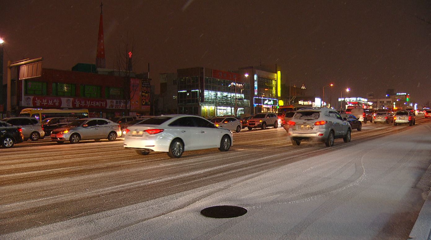 한편 낮부터 기온이 올라 영상 3도에서 6도 분포를 보이겠지만 저녁에는 찬 공기의 영향으로 기온이 0도 안팎까지 떨어지겠고 동부권을 중심으로는 1cm 상당의 눈이 내리겠습니다. ​