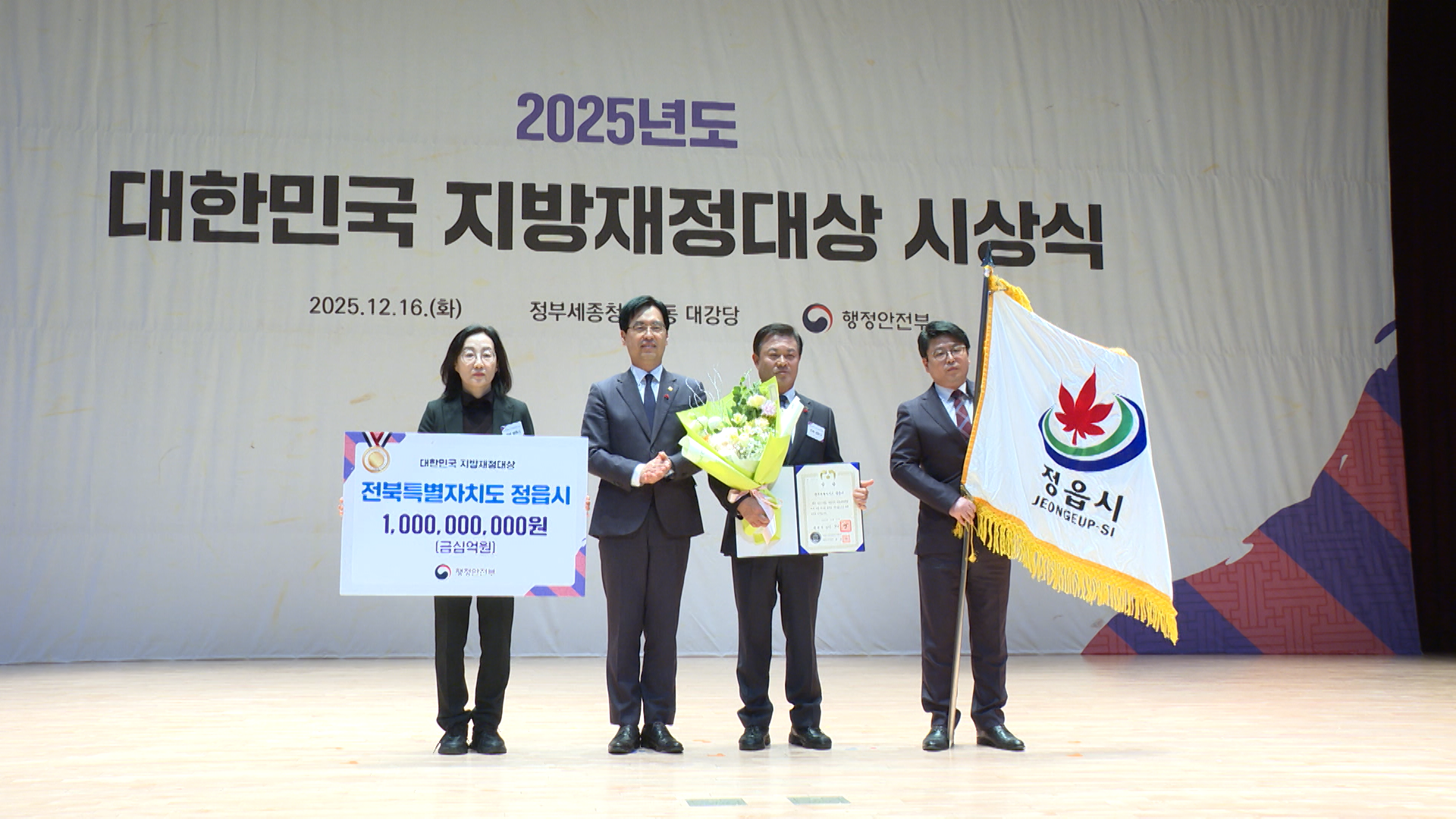 행정안전부는 예산절감과 지방보조금 운용 혁신 등을 따져 정읍시와 경기도 등 4개 지자체를 대통령상인 지방재정대상에 선정하고 시상식을 열어 표창했습니다.