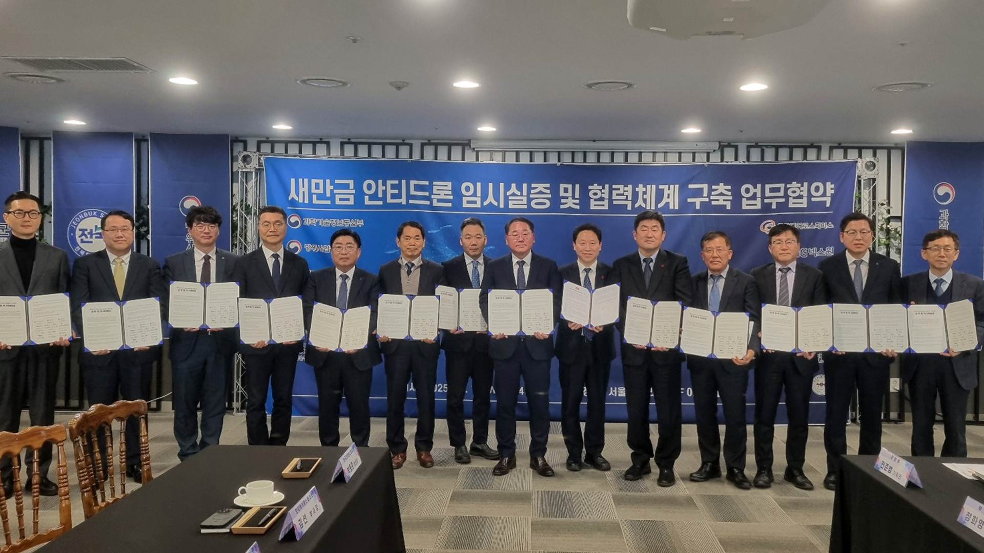 이번 협약은 새만금 지역을 활용해 안티드론 기술 개발 등을 촉진하기 위해 마련됐으며, 최근 국가 주요 시설에 비인가 드론 침입 사례가 잇따르면서 안티드론의 필요성이 제기되고 있습니다.