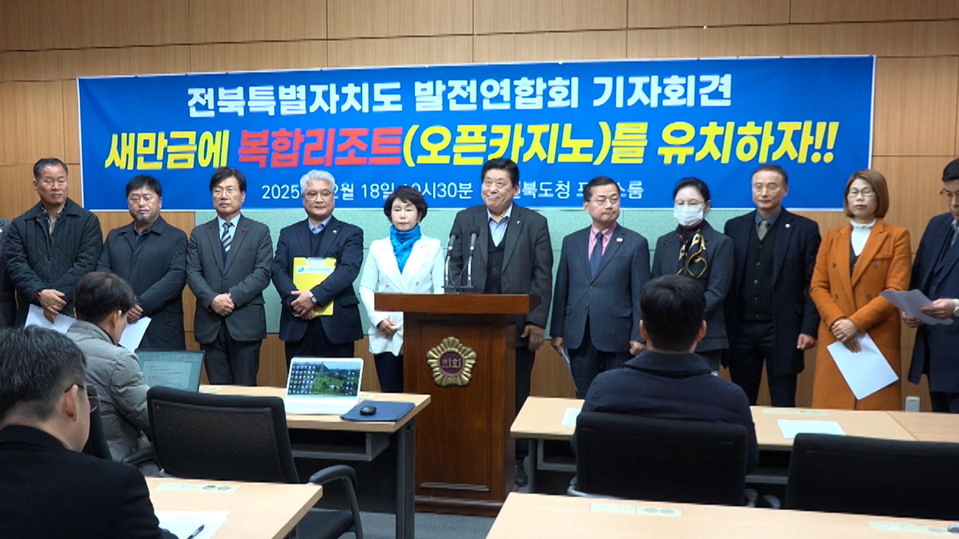민간단체인 전북발전연합회는 오늘(18일) 전북도의회에서 기자회견을 열고, "새만금이 국책사업이지만 국가 전략은 보이지 않는다. 사람과 자본을 끌어들일 수 있는 복합리조트 형태의 오픈 카지노 유치가 필요하다"고 밝혔습니다.