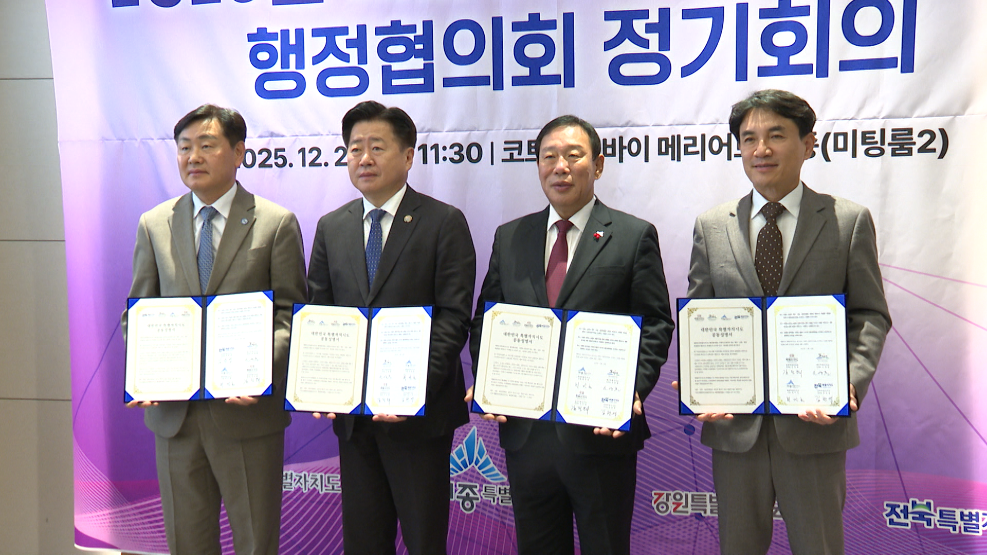 전북도 등 4개 특별자치시도는 오늘(23일) 세종시에서 행정협의회 정기회의를 갖고 공동성명서를 통해 정부와 쟁점이 정리된 특별법 개정안이 국회에 계류된 채 실질적인 논의조차 이뤄지지 않는다며, 국회 통과를 촉구했습니다.