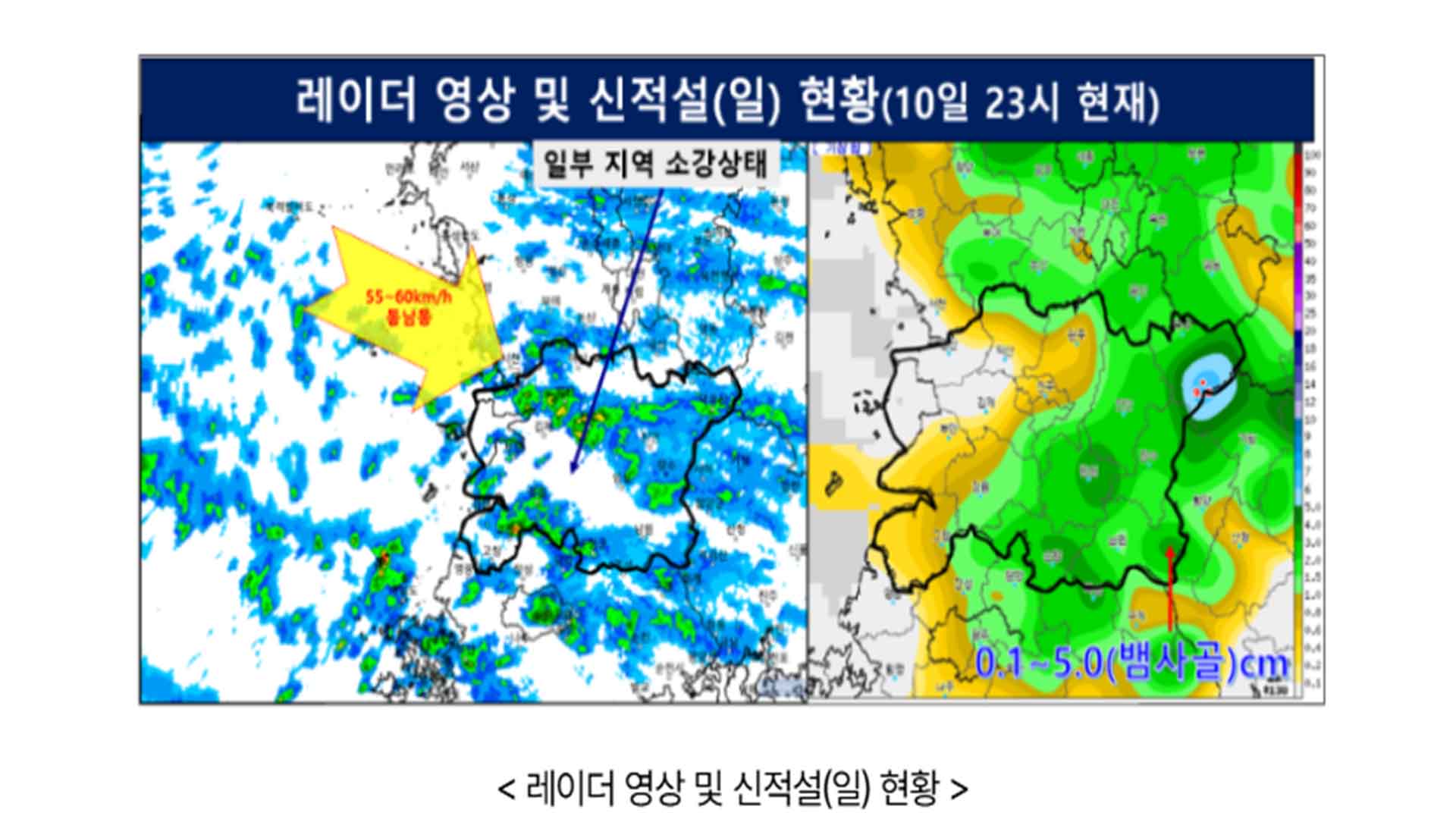 현재 전역에 대설주의보가 내려져 있고, 서남부 지역과 무주, 전주 등지에 눈발이 이어지는 가운데, 내일(11일) 새벽 사이에는 시간당 1~3cm, 서남부에는 시간당 5cm에 달하는 강한 눈이 예상됩니다.