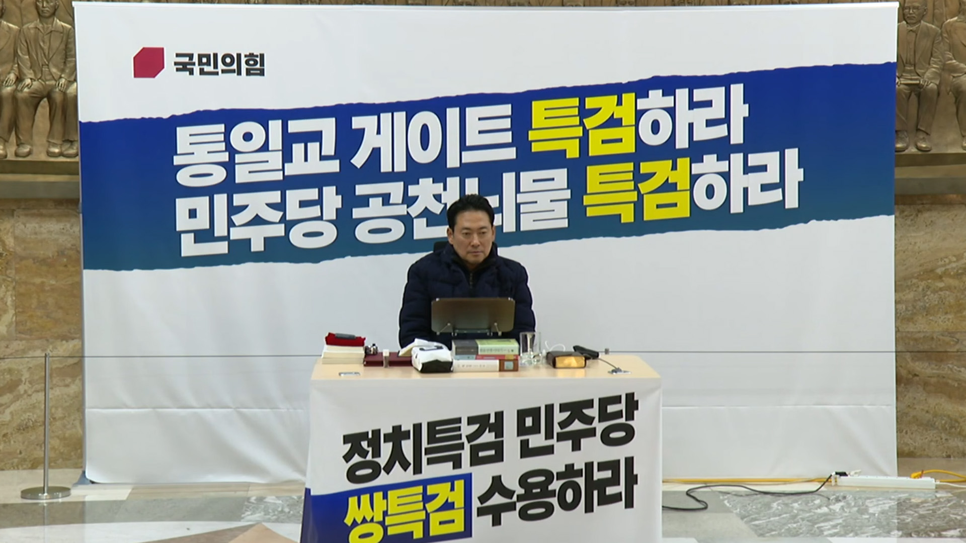 장동혁 국민의힘 대표가 더불어민주당의 통일교·공천헌금 '쌍특검' 수용을 요구하며 사흘째 단식 농성 중인 가운데, 배현진 국민의힘 의원이 단식 중단을 촉구했습니다.