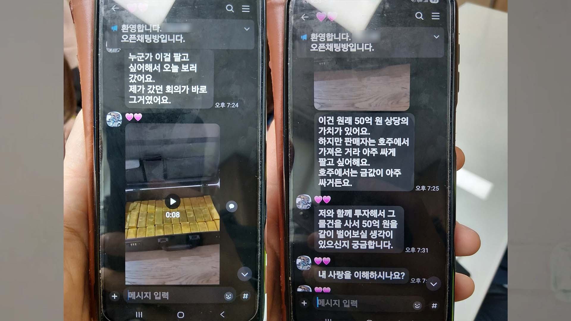 출동한 경찰이 피해자의 휴대전화를 확인한 결과 신원을 알 수 없는 대화 상대방과 나눈 대화에는 사랑을 고백하는 내용과 함께 호주에서는 금값이 싸기 때문에 투자하지 않겠냐는 사기 수법이 고스란히 드러났습니다.