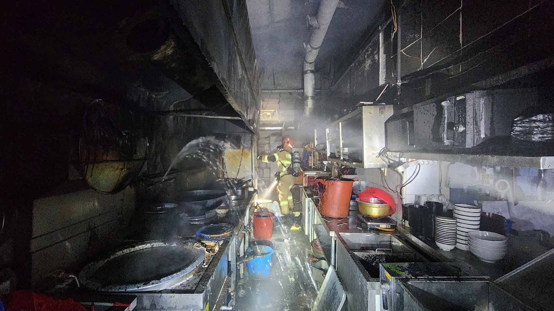 소방은 주방장이 춘장을 볶기 위해 식용유가 든 팬을 가열하다 자리를 비운 사이 불이 시작된 것으로 추정하고 정확한 화재 원인을 조사하고 있습니다.