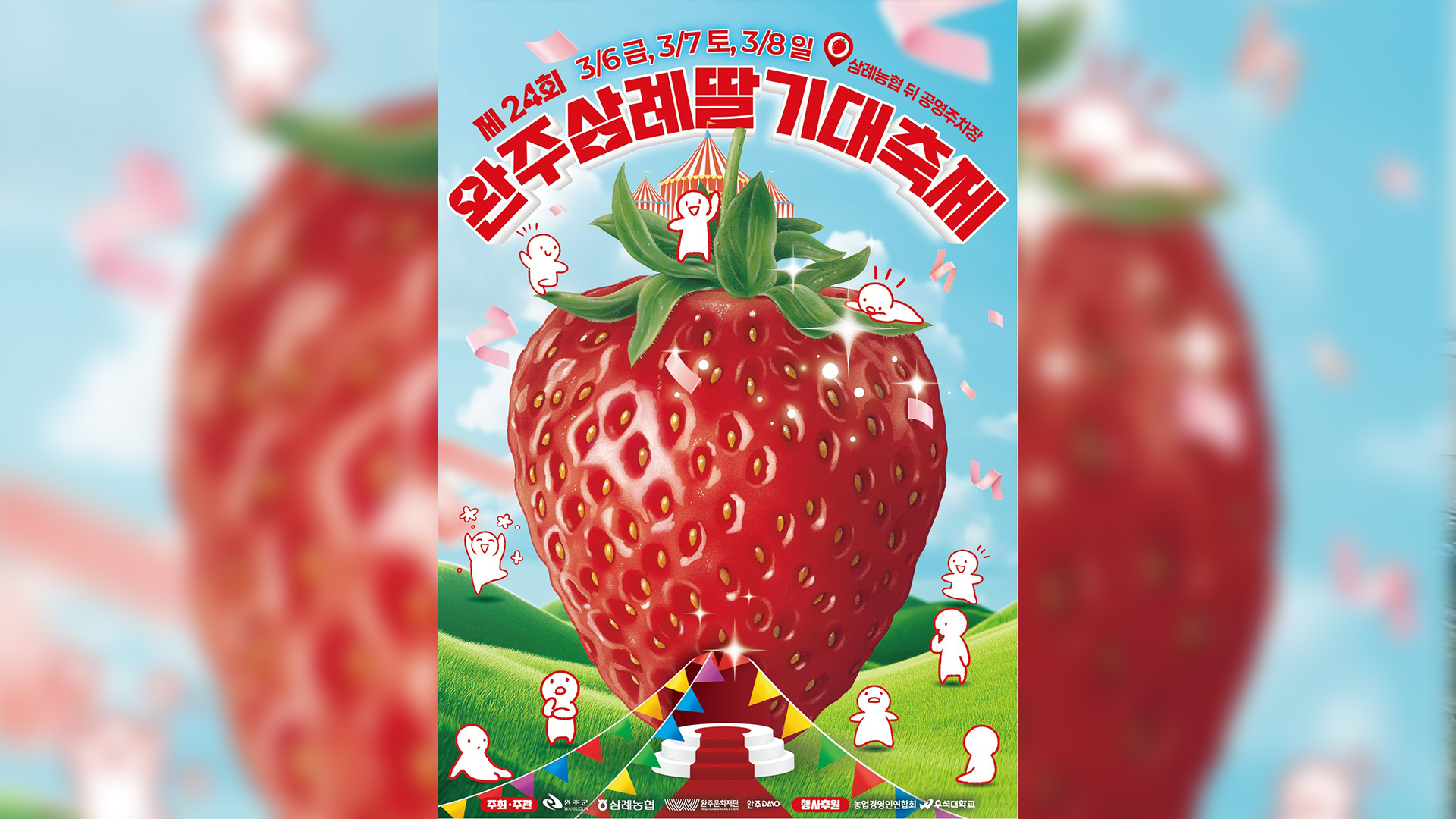 완주군이 오는 3월 6일부터 8일까지 삼례농협 뒤 공영주차장 일원에서 '제24회 완주 삼례 딸기축제'를 개최합니다.