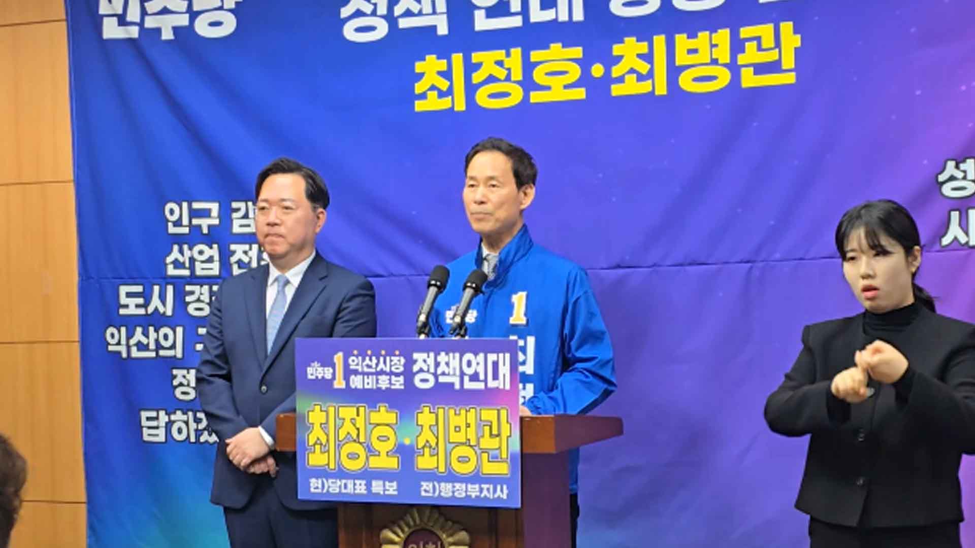 최 전 차관과 최 전 부지사는 오늘(25일) 도의회에서 공동 기자회견을 열고 "익산의 민생 회복과 도시 재도약을 위해 정책을 공유하기로 했다"며 '정책 연대'를 선언했습니다.