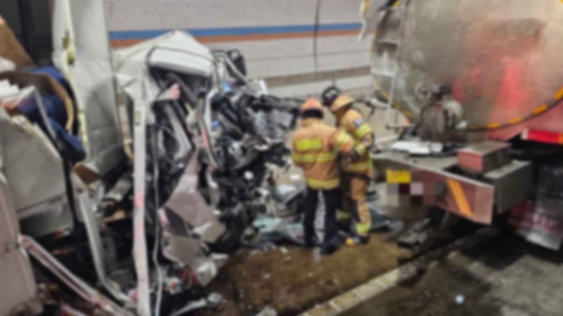 오늘(18일) 오전 9시 30분쯤 전남 구례 산동면 순천완주고속도로 하행선 천마터널을 달리던 4.5톤 화물차가 앞서 가던 25톤 탱크로리를 들이받아 화물차에 타고 있던 20대가 숨지고, 두 차량 운전자 2명이 다쳤습니다.