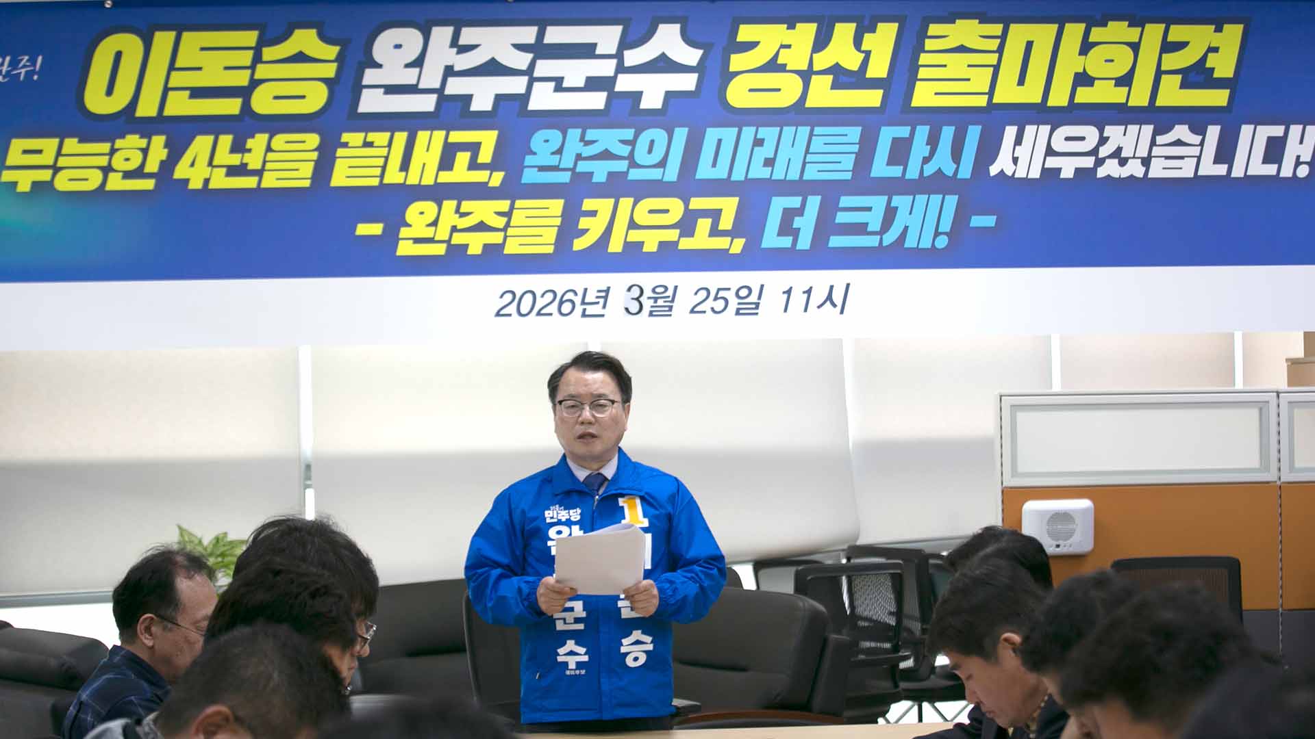 완주군수에 출마한 이돈승 예비후보는 오늘(25일) 기자회견을 열고, “완주가 피지컬AI 사업 실증지역에서 배제될 위기에 놓였고, 로컬푸드도 흔들리고 있다”고 현 군정을 비판하며 도약을 이끌겠다고 밝혔습니다.
