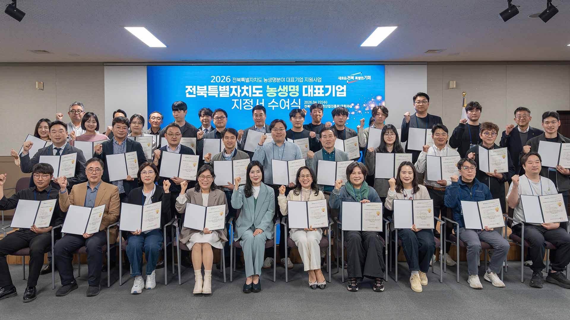 전북바이오융합산업진흥원은 오늘(22일) ‘2026년 전북특별자치도 농생명분야 대표기업 지정서 수여식’을 열고, 업체 대표 등 50여 명을 대상으로 사업비 사용 및 정산 교육, 질의응답, 선정기업 제품 전시 등을 진행했습니다.