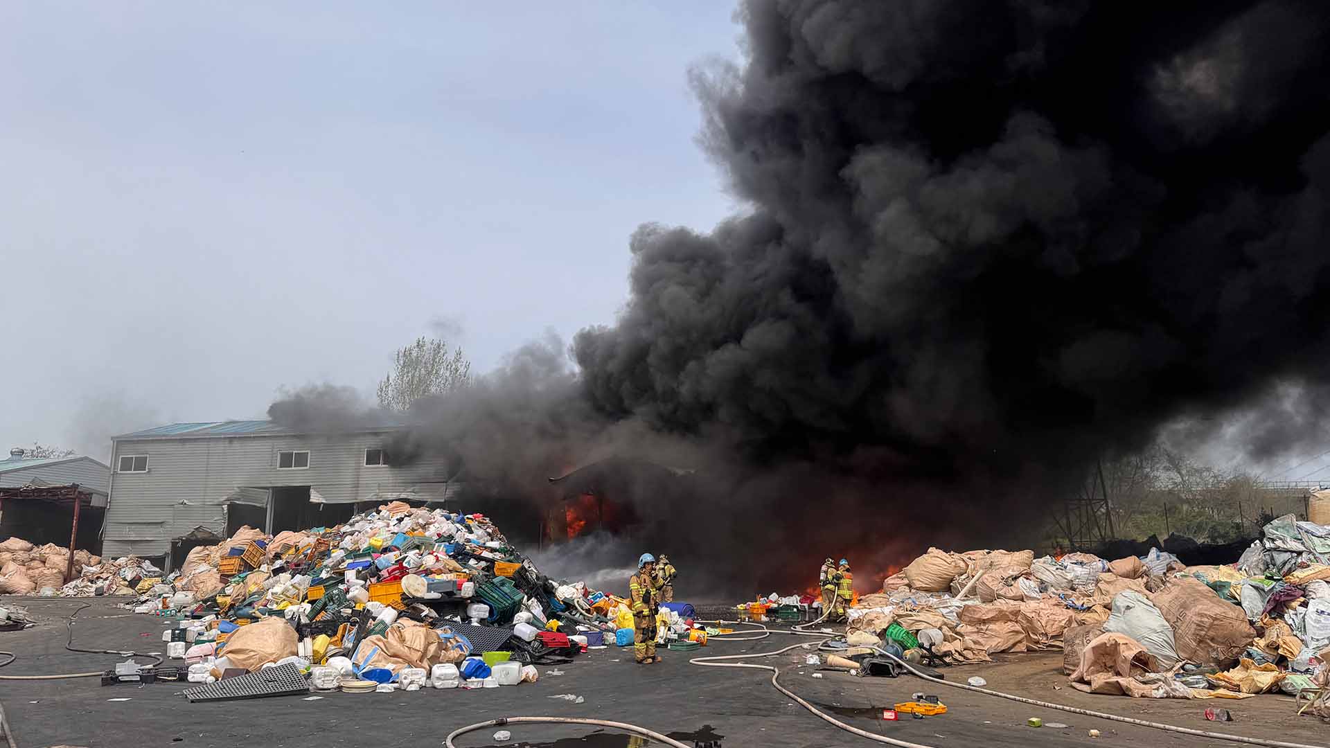 오늘(23일) 오후 2시쯤 군산시 내흥동의 한 폐플라스틱 재생업체에서 불이 나 외부에 쌓여 있던 플라스틱 자재 등을 태운 뒤 2시간 20분만에 큰 불길이 잡혔습니다.