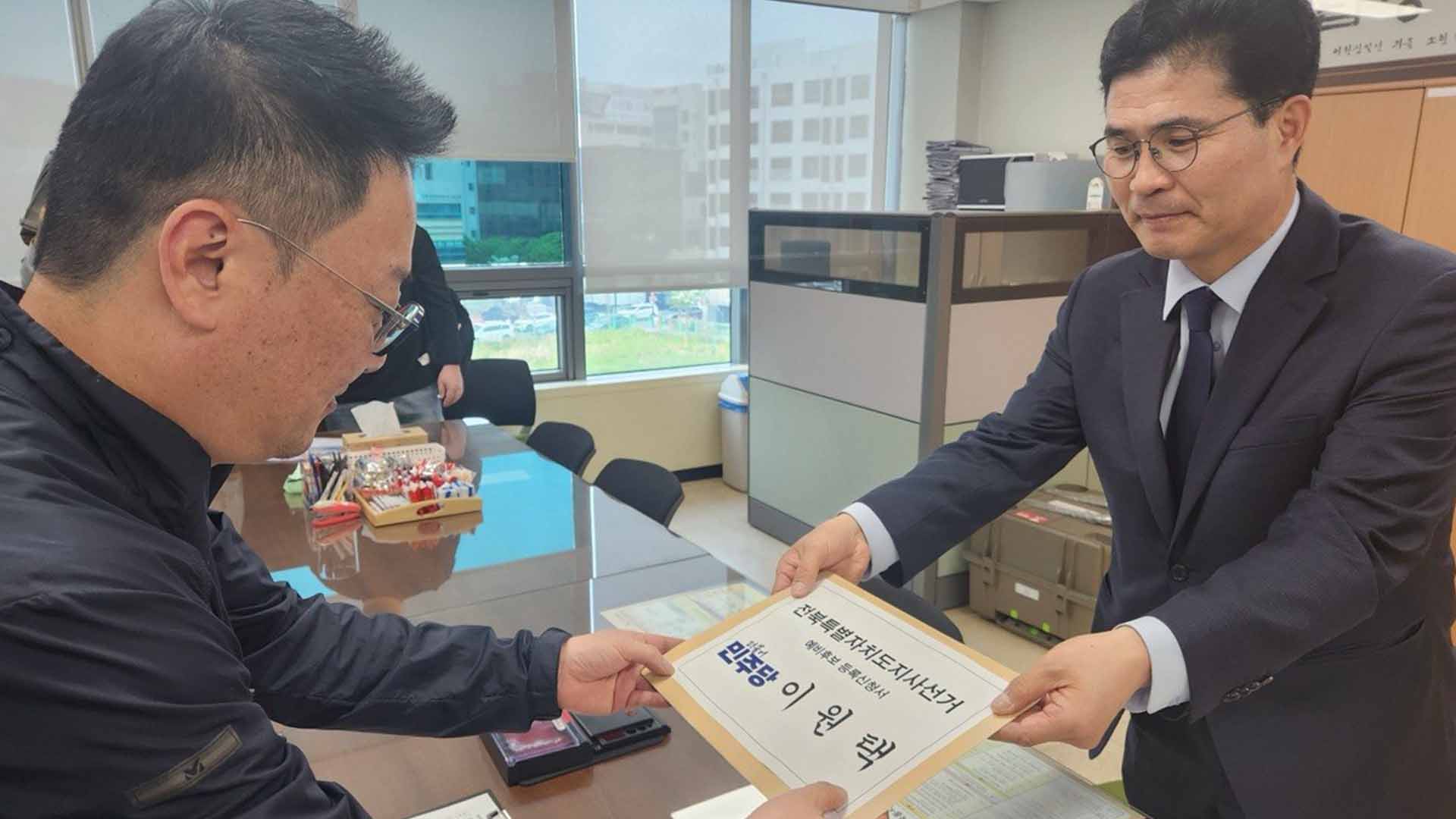민주당 이원택 전북도지사 후보가 도지사 예비후보 등록를 완료했습니다.