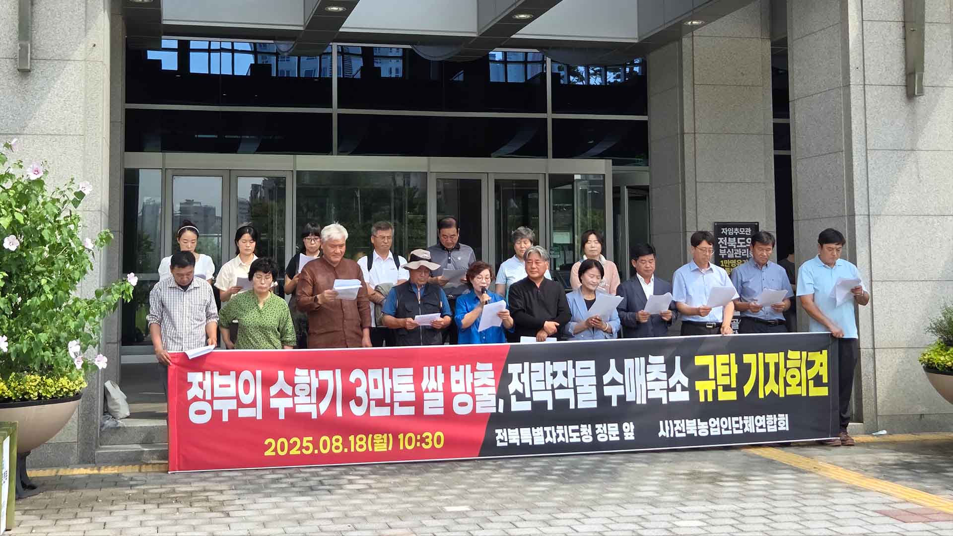 새 정부 출범 이후 쌀 농사를 둘러싼 정부의 급격한 정책 변동으로 농민들의 반발이 터져나오고 있습니다.전북농업인단체연합회는 오늘(18일) 전북도청 앞에서 기자회견을 열고, 정부의 비축미 방출과 전략 작물 재배...