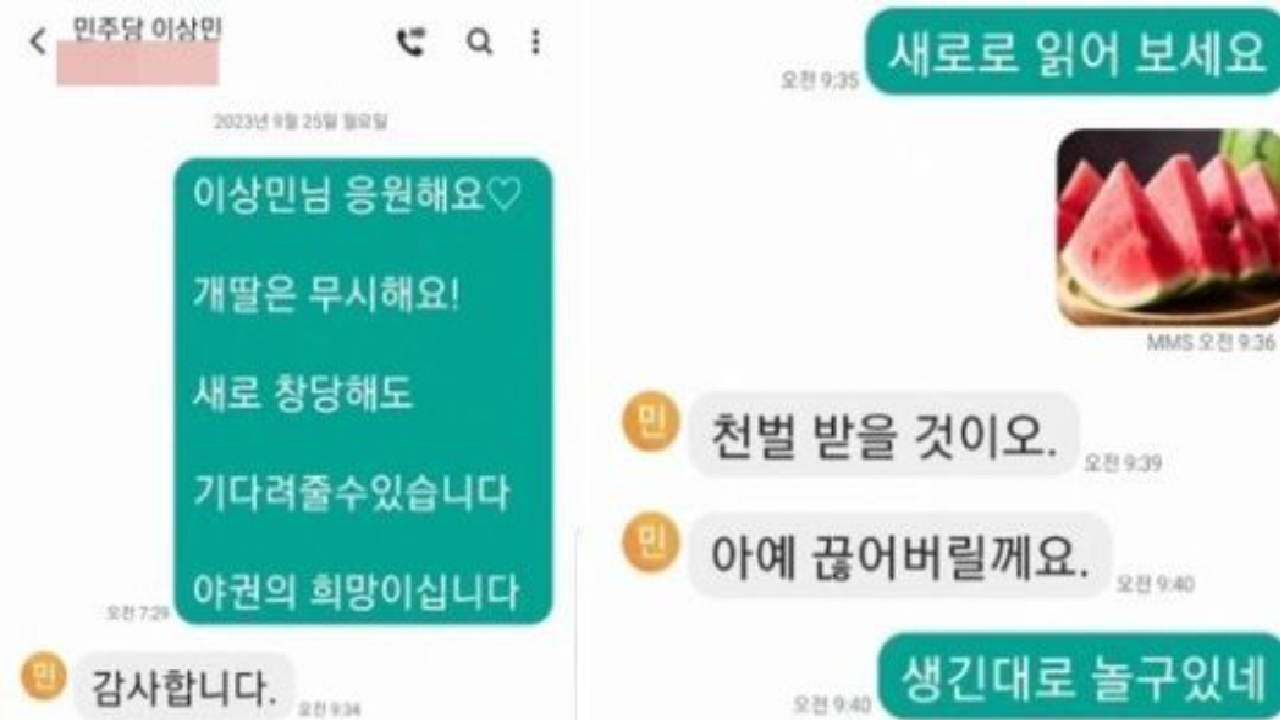 더불어민주당 내 대표적인 '비명(비이재명)계'로 꼽히는 이상민 의원이 이재명 대표의 강성 지지층인 이른바 '개딸'들에게 욕설이 담긴 문자메시지를 받은 사실이 공개됐습니다. 이 의원은 이 대표 체포동의안 부결 ...