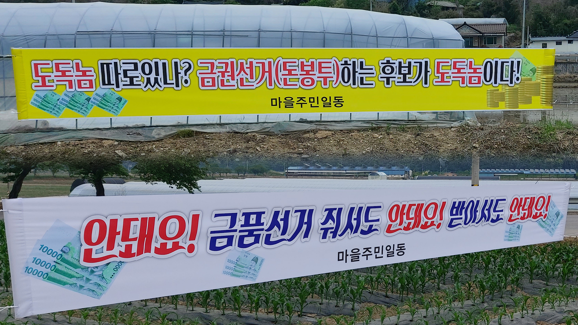 선거 때 마다 돈봉투 논란이 끊이질 않고 있는 가운데, 주민들이 자발적으로 금권선거와 관권선거를 거부하고 나서 화제가 되고 있습니다.순창군 유등면의 유촌마을과 순창읍의 장덕마을 주민들은 마을 입구에 '돈 들고...