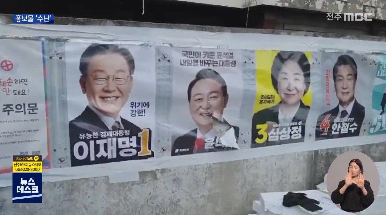 ◀ 앵커 ▶대통령 선거가 2주 가 안 남은 가운데 과열양상을 반영하듯, 최근 도내에선 선거홍보물 훼손 사례가 심심찮게 발생하고 있습니다.형사처벌을 경고한 주의 안내문도 본체만체하는 선거범죄에 대해 경찰이 엄단...