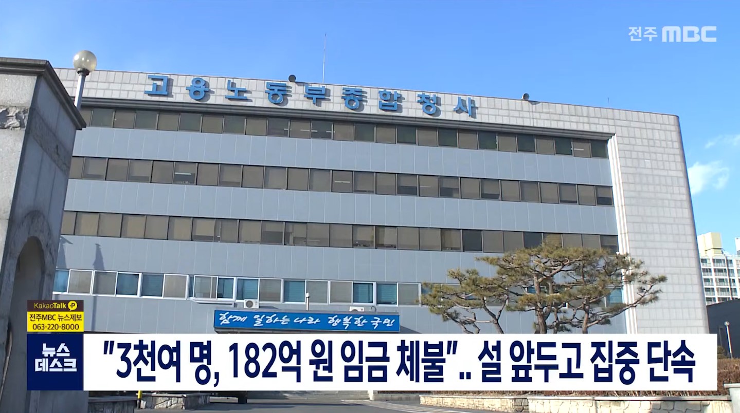 설 명절을 맞아 노동 당국이 체불 임금청산에 나섭니다.고용노동부 전주지청은오는 30일까지 임금 체불 예방과 청산을위한 집중 지도 기간을 갖고 공공 건설 현장과불법 하도급 실태를 집중 점검하는 등체불 청산을 지...