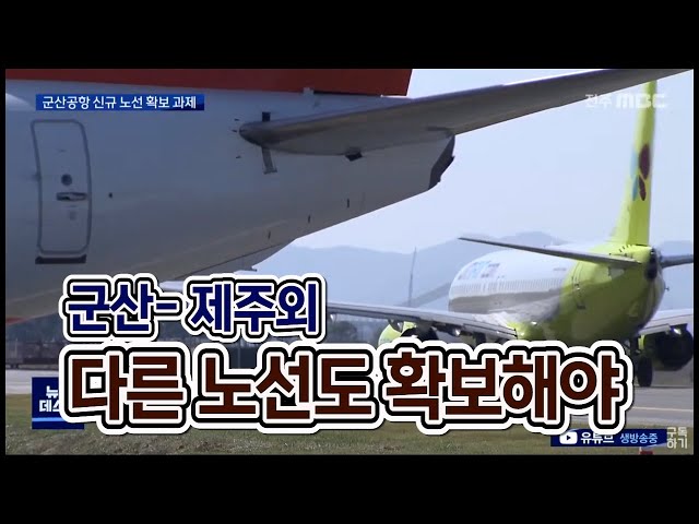 ◀ANC▶하루 4편 제주행 항공편이 뜨면서군산공항이 활기를 되찾고 있습니다.군산시는 다양한 노선을 확보하면서활성화에 성공한 강원도 양양을 모델로 삼아추가 노선 확보에 공을 들이고 있는데요,정작 새만금국제공항...