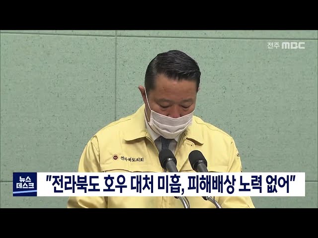 전라북도의 집중호우 대처가 미흡했고 홍수 피해 배상에도 손을 놓고 있다는 지적이 제기됐습니다. 도의회 최영일 부의장은 기자회견을 열고 수자원공사가 홍수 피해의 1차적 책임이 있지만, 전라북도 역시 비상 3단계...