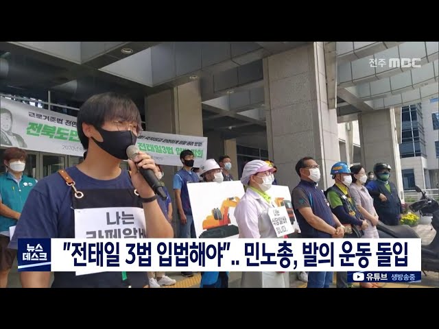 민주노총 전북본부는 최근보도자료를 내고 코로나 19로 방과 후 강사 등근로기준법을 적용받지 못하는 노동자들은생존의 한계까지 내몰려 있다며,국회가 근로기준법 개정이 포함된전태일 3법을 입법해야 한다고 주장했습니...