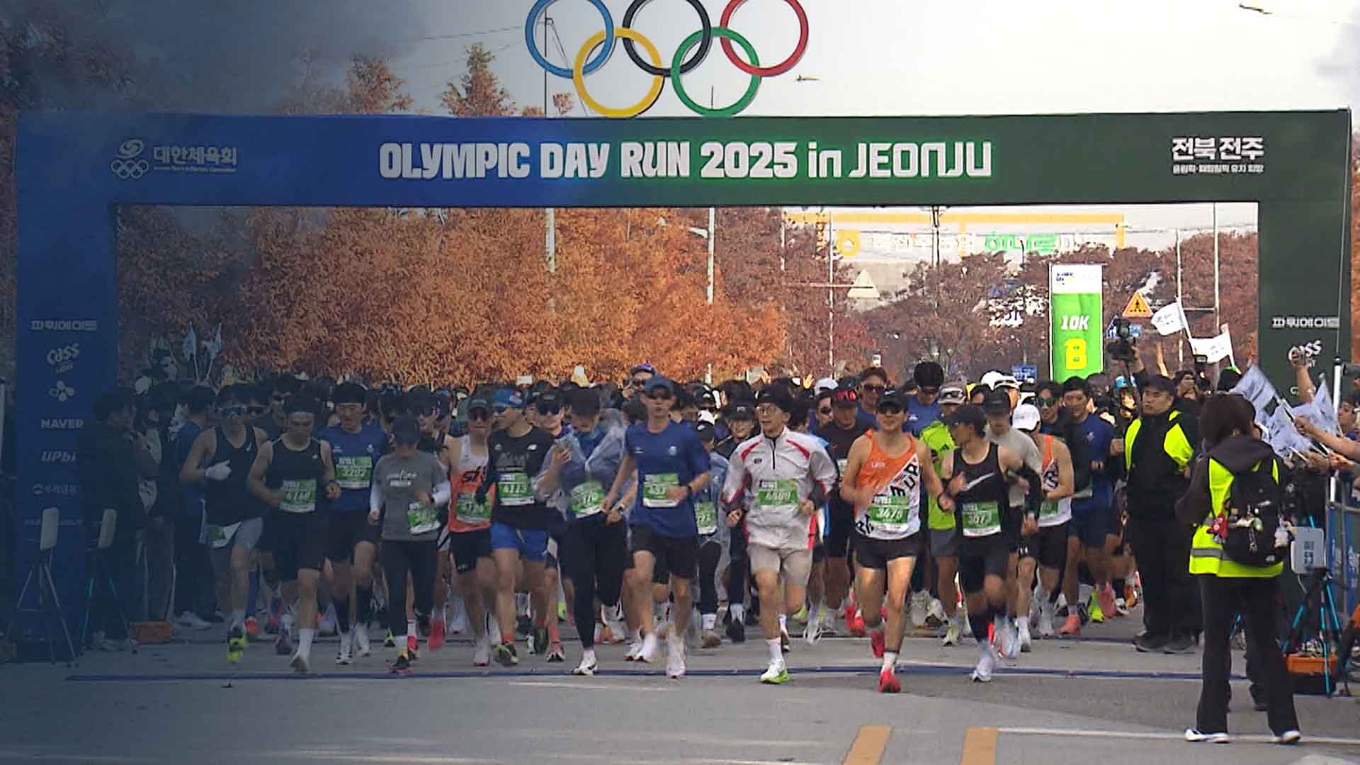 ◀앵커▶전 세계 150여 개 도시에서 개최되는 글로벌 러닝 축제, '올림픽 데이런'의 국내 행사가 올해는 전주에서 열렸습니다.전국에서 모인 수천명의 러너들이 청량한 가을 공기를 마시며 마라톤을 즐긴 현장에, ...