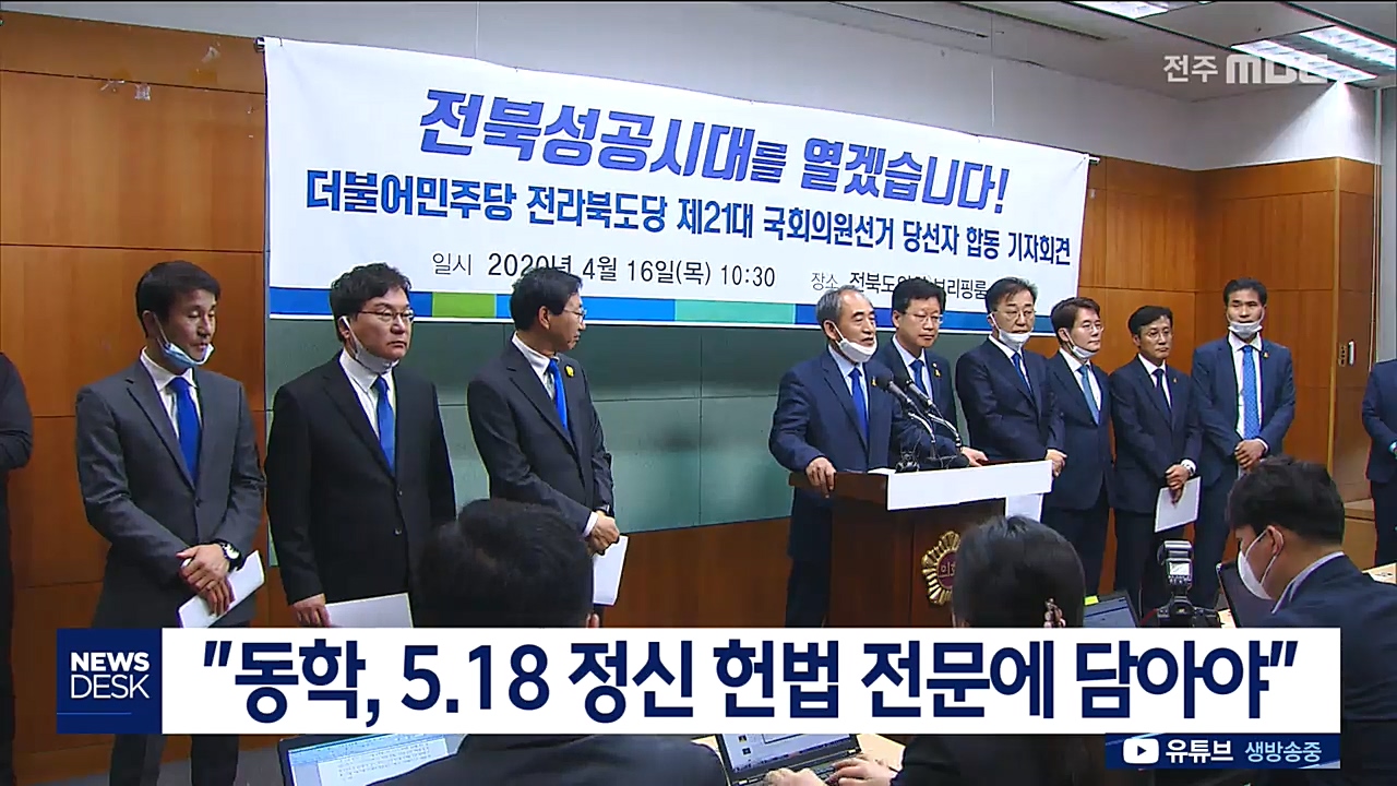 동학농민혁명과 5.18 광주 민주화운동 정신을헌법 전문에 포함시키자는 국회 결의안이발의됐습니다.국회 윤준병 의원은동학농민혁명과 5.18 광주민주화운동이대한민국 민주주의를 정립하는 데결정적 역할을 한 만큼헌법...