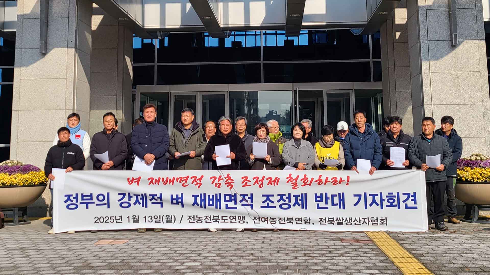 농가마다 쌀 재배 면적을 의무적으로 줄이게 하는 정부 정책에 농민단체가 반발하고 나섰습니다.전농 전북도연맹은 오늘(13일) 기자회견을 열고 정부가 매년 수입되는 40만 톤의 쌀은 고려하지 않고 농민의 생산만을...