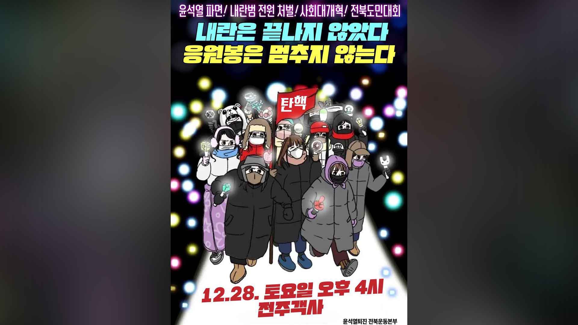 윤석열 대통령 파면과 국민의힘 해체를 요구하는 집회가 연말까지 이어집니다.윤석열 퇴진 전북운동본부는 내일(28일) 오후 4시부터 전주 풍패지관 앞에서 윤 대통령 즉각 체포와 파면, 국민의힘 해체를 요구하는 집...