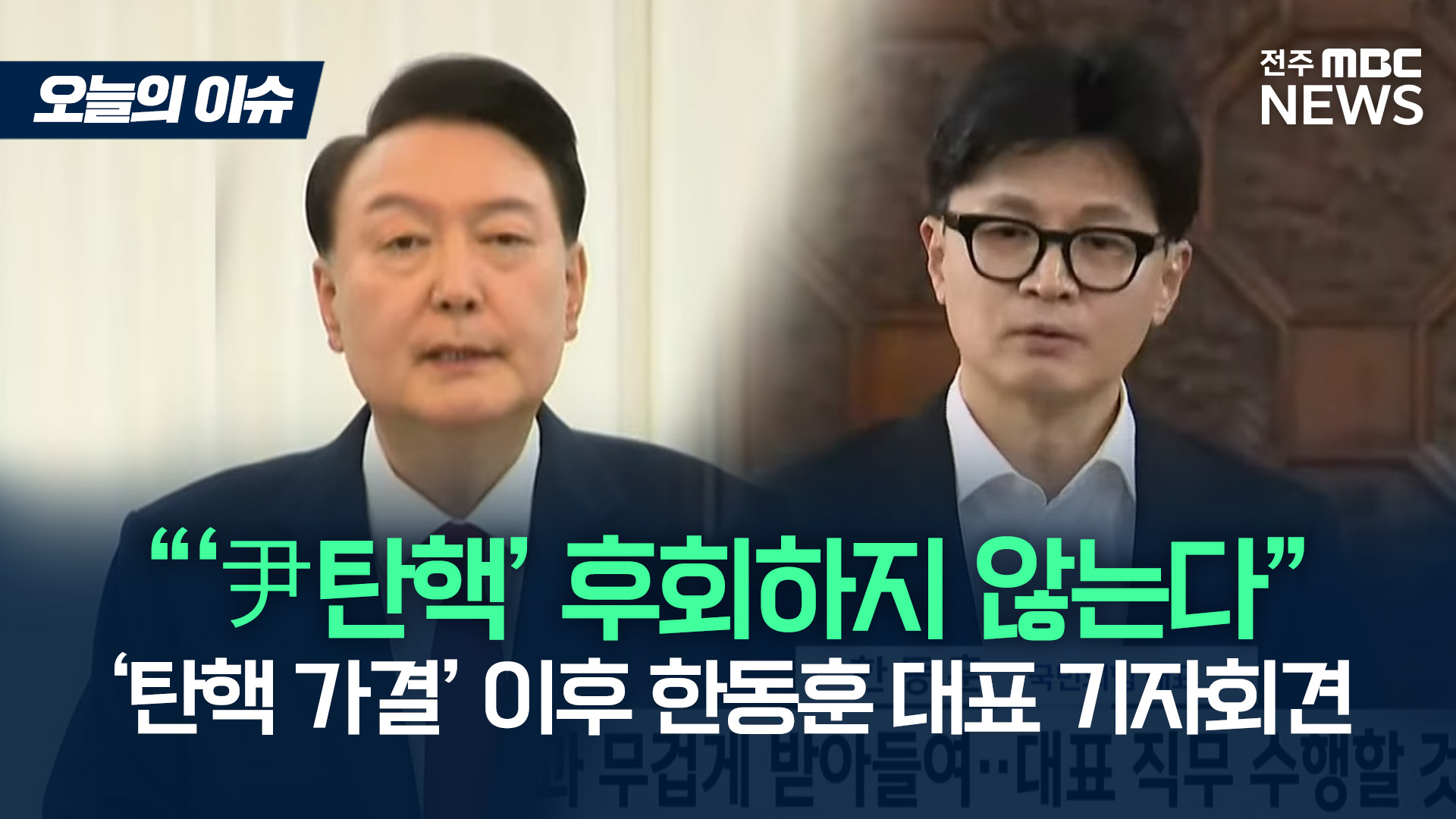 한동훈 국민의힘 대표가 윤석열 대통령 탄핵소추안이 국회에서 가결된 것과 관련해 "집권여당 대표로서 국민과 함께 잘못을 바로잡고 헌법과 민주주의를 지키겠다"고 말했습니다.한 대표는 오늘(14일)국회에서 "나라와...