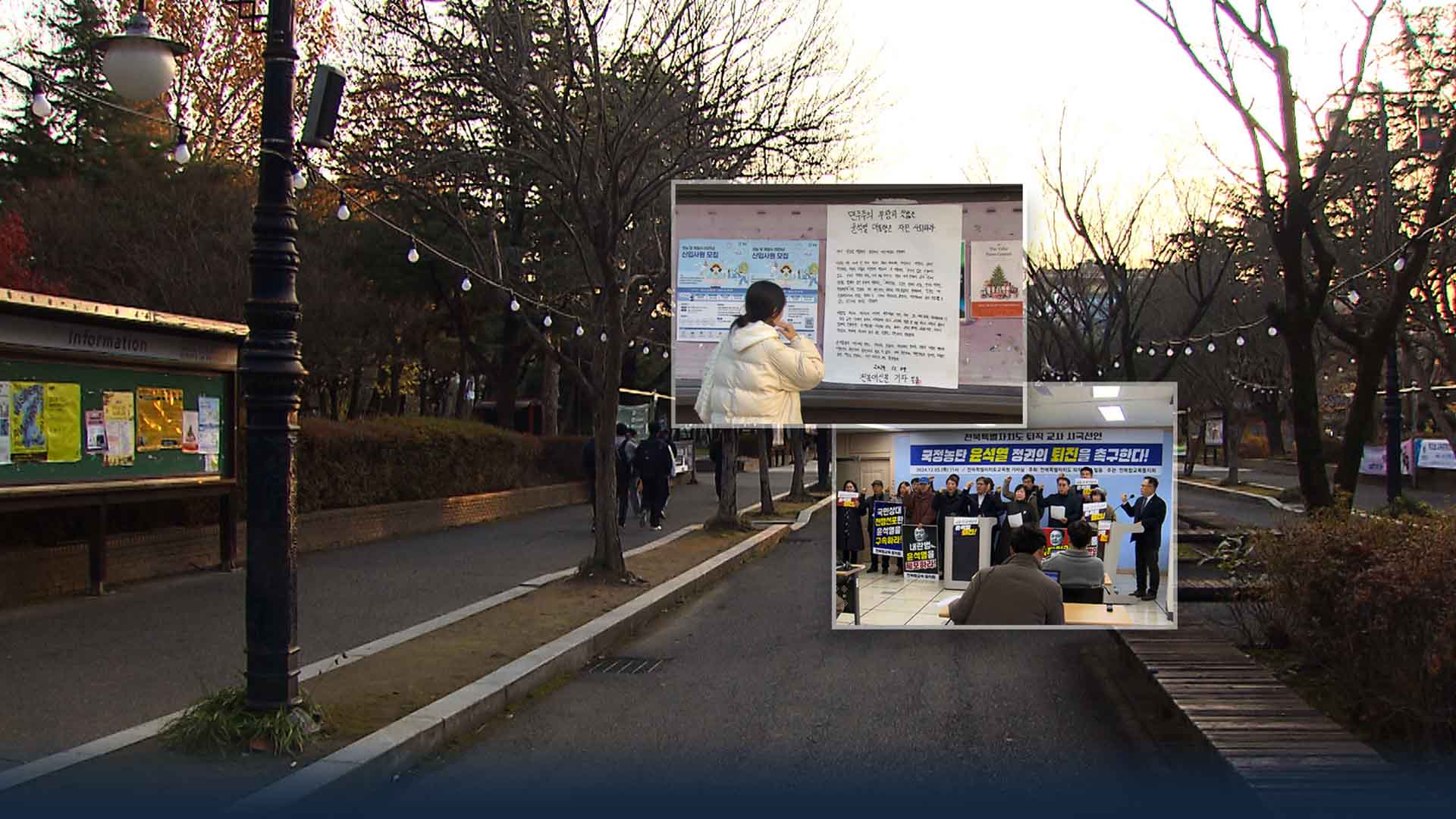 ◀앵커▶교육계와 대학가의 윤석열 정권 퇴진 목소리는 날이 갈수록 거세지고 있습니다.퇴직 교사들이 학생들 보기 부끄럽다며 시국 선언에 나섰고, 대학가에서는 총학생회의 시국 선언에 이어 퇴진을 요구하는 대자보가 ...