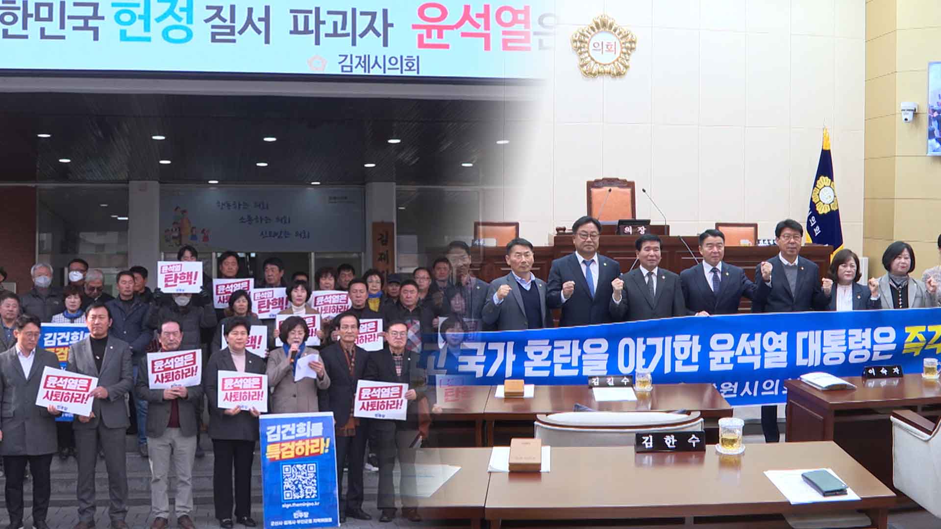 ◀앵커▶윤석열 대통령이 촉발한 계엄 사태의 후폭풍이 지역 정가를 들끓게 하고 있습니다.계엄령의 부당성 알리기에 집중하던 야당 소속 시군의원들은 이제는 윤 대통령의 퇴진과 탄핵안 처리에 목소리를 높이고 있습니다...