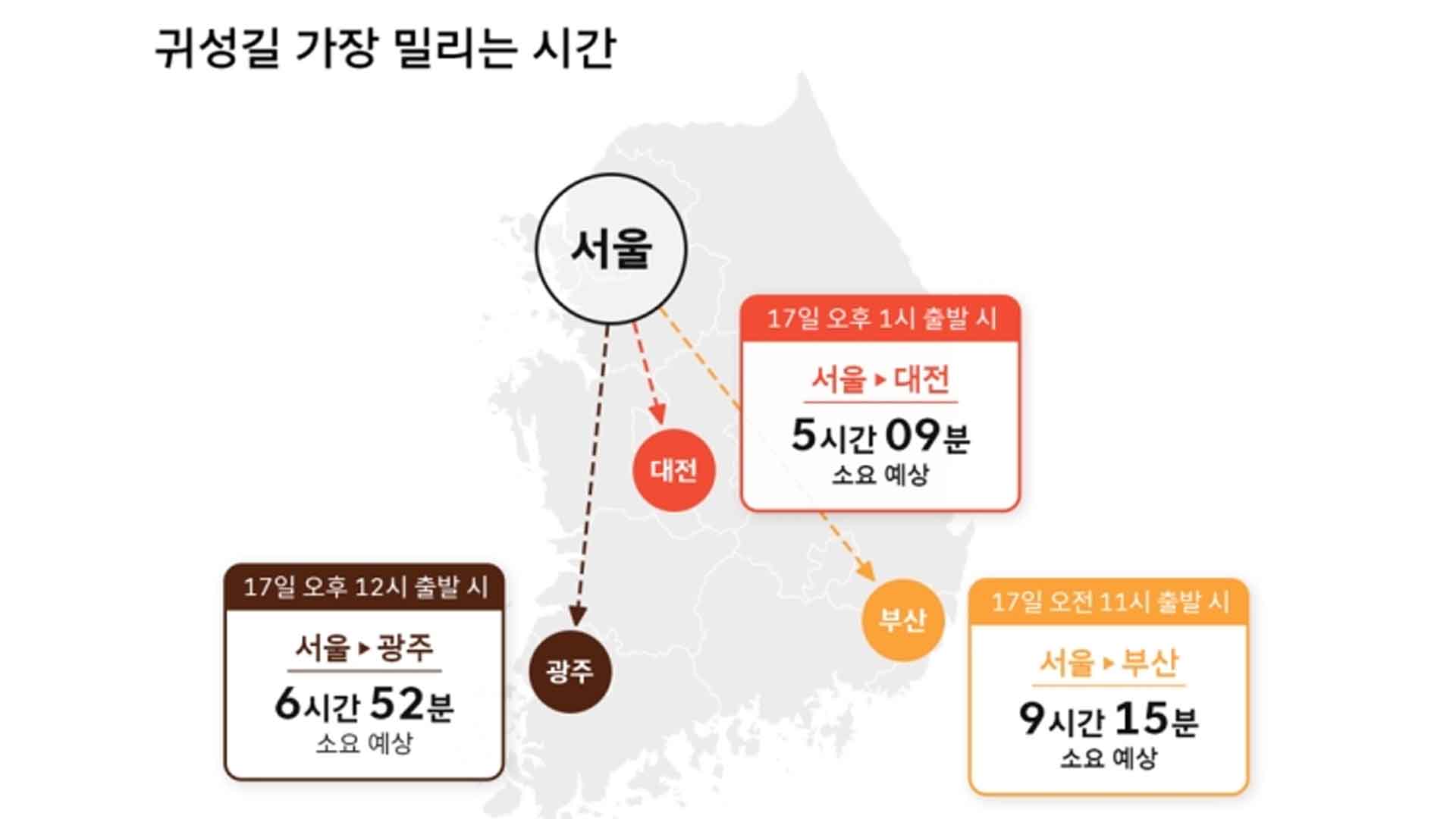 이번 추석 연휴는 귀성길과 귀경길 모두 17일 정오경 교통 정체가 최고조에 달할 것으로 전망됩니다.티맵모빌리티와 SK텔레콤은 최근 6년간 티맵 명절 이동 데이터를 바탕으로 올 추석 교통 상황 예측 결과를 오늘...