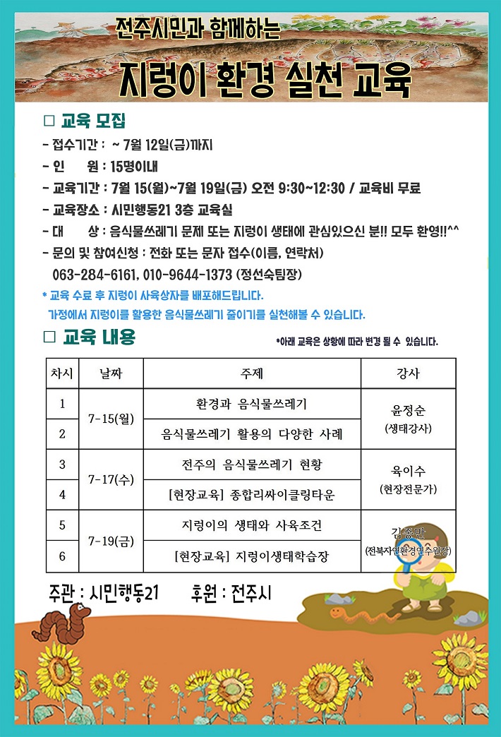 - 시민행동21에서 '전주시민과 함께하는 지렁이 환경 실천 교육'을 진행합니다.