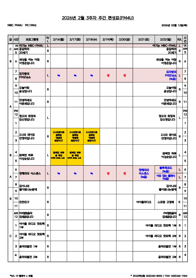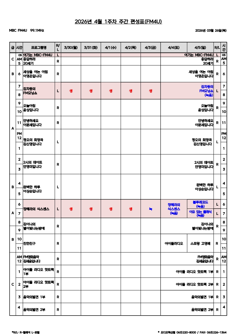FM4U 편성표